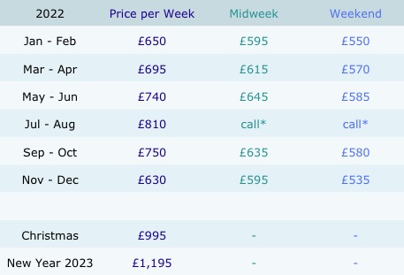 For availability and booking enquiries please call or email us. Our details are on the contact page.